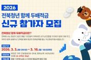 한국시사경제 경제팀 | 부안군은 지역 청년의 안정적인 자산 형성을 지원하기 위해 2026년 전북청년 함께 두배적금 사업 신규 참여자 30명을 모집한다고 밝혔다. 이번 사업은 근로 청년이 매월 10만원을 2년간 저축하면 지자체가 매월 10만원을 추가 적립해 주는 자산형성 지원사업으로 만기 시 본인 납입액 240만원에 지자체 지원금 240만원을 더한 총 480만원과 이자를 수령하게 된다. 모집기간은 오는 3월 3일 오전 9시부터 16일 오후 6시까지이며 선착순이 아닌 자격요건 충족자를 대상으로 한 서류심사 방식으로 선발한다. 신청 대상은 공고일 기준 주민등록상 주소지가 부안군인 18세 이상 39세 이하 청년으로 가구 기준 중위소득 140% 이하의 근로자 또는 사업자다. 일정 기간 이상 근로 또는 사업을 유지하고 있어야 하며 세부 자격요건은 공고문을 통해 확인할 수 있다. 신청은 전북청년 함께 두배적금 홈페이지를 통해 온라인으로만 가능하며 방문 및 우편 접수는 받지 않는다. 선정된 참여자는 적립기간 동안 금융교육(온·오프라인)과 금융상담 및 컨설팅을 이수해야 하며 이를 통해 소비