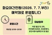한국시사경제 오영주 기자 | 옥천군은 화요야간민원실 운영의 효율성을 높이고 군민의 불필요한 대기와 재방문을 줄이기 위해 오는 7월 7일부터 예약제로 전환해 운영한다고 밝혔다. 이번 예약제 전환은 민원실 야간 운영에 수반되는 조명‧냉난방 등 에너지 사용을 필요한 만큼만 합리적으로 운영하여 에너지 절약과 탄소 배출 저감에도 기여할 것으로 기대된다. 그동안 야간 민원 수요가 일정하지 않아, 민원 대기가 없는 시간에도 청사 내 조명과 냉난방이 가동되는 등 불필요한 에너지 사용이 발생해 왔다. 이에 군은 사전 예약을 통해 방문 수요를 미리 파악하고 민원 대응을 준비함으로써, 담당 창구를 필요한 범위로 운영하는 등 야간 민원실 운영을 효율화하는 방향으로 제도를 개선했다. 예약 접수는 운영일 전날 오후 6시까지 가능하며, 전화를 통해 신청할 수 있다. 예약 시에는 성명, 연락처, 방문 희망 시간, 민원 내용 등을 제출해야 한다. 군 관계자는 “예약제 도입을 통해 행정력 낭비를 줄이고 민원 처리 효율을 높이는 한편, 야간 청사 에너지 사용 절감 등 생활 속 에너지 절약 실천을 군정 전반으로 확산해 나
