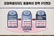 한국시사경제 권충언 기자 | 강원특별자치도는 2월 20일 오후 2시 강릉에 위치한 도 반려동물지원센터에서 ‘강원형 동물복지 정책’을 발표하고, 복지‧의료‧산업‧관광을 아우르는 4대 전략을 본격 추진한다고 밝혔다. - 이번 정책은 반려동물 양육이 일상화된 사회 변화에 대응해 공공의 역할을 강화하기 위해 마련됐다. 현재 전국 반려 가구는 591만 가구로 전체 가구의 25% 이상을 차지하고 있으며, 반려동물(개‧고양이)은 약 800만 마리 수준으로 추산된다. - 이 자리에는 김진태 도지사를 비롯해 강원경제진흥원, 강원관광재단, 도수의사회장, 강원대 수의과대학장, 군견훈련소 교관, 강릉 주민, 강릉동물보호센터장 등 각계 전문가와 현장 관계자들이 참석했다. 참석자들은 정책 방향을 공유하고 반려동물지원센터 공간 확대 필요성, 입양 이후 보호자와 유기견을 위한 교육‧관리 지원 강화 방안 등 다양한 의견이 논의됐다. 김진태 지사는 “동물복지를 하나의 정책 아젠다로 삼아 보다 체계적으로 추진하려고 한다”며, “이를 위해 각 기관과 전문가들의 협력이 반드시 필요하다”고 밝혔다. 이어 “이곳